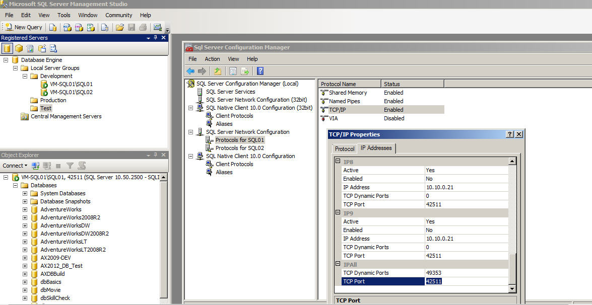 Over the years, I learned that Microsoft SQL Server product has TCP/IP port configured to 1433 by default. I strongly advised to change the SQL Server TCP/IP port to unique port number. In addtion, It’s Microsoft Best Practice advised SQL Server database’s TCP/IP port to be changed. Enclosed are the procedures how to change Microsoft SQL Server 2008 R2 database port.