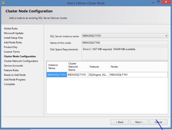 The two nodes computers are called INDAXSQLT1N1 and INDAXSQLT1N2 as shown picture below: